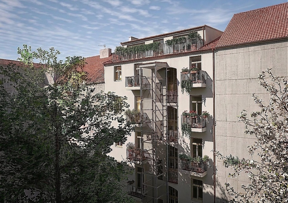 V rámci stavebních úprav historického objektu v moderní, dynamicky se rozvíjející čtvrti Praha-Karlín vzniknou formou půdní vestavby a nástavby celkem 4 nové bytové jednotky. Součástí projektu je také kompletní revitalizace celého bytového domu. Ta mu navrátí jeho původní slávu a lesk z konce 19. století, avšak s využitím těch nejmodernějších materiálů a technologií. Pro maximální komfort obyvatel bude navíc do dvorního rizalitu budovy citlivě začleněn nový výtah.